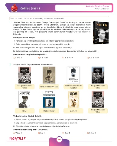 ÜNİTE-7 | TEST 2 Atatürk'ün Eserleri