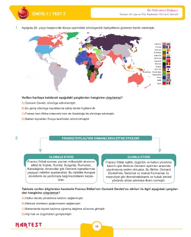ÜNİTE-1 | TEST 2 Gelişen Avrupa ve Güç Kaybeden Osmanlı Devleti